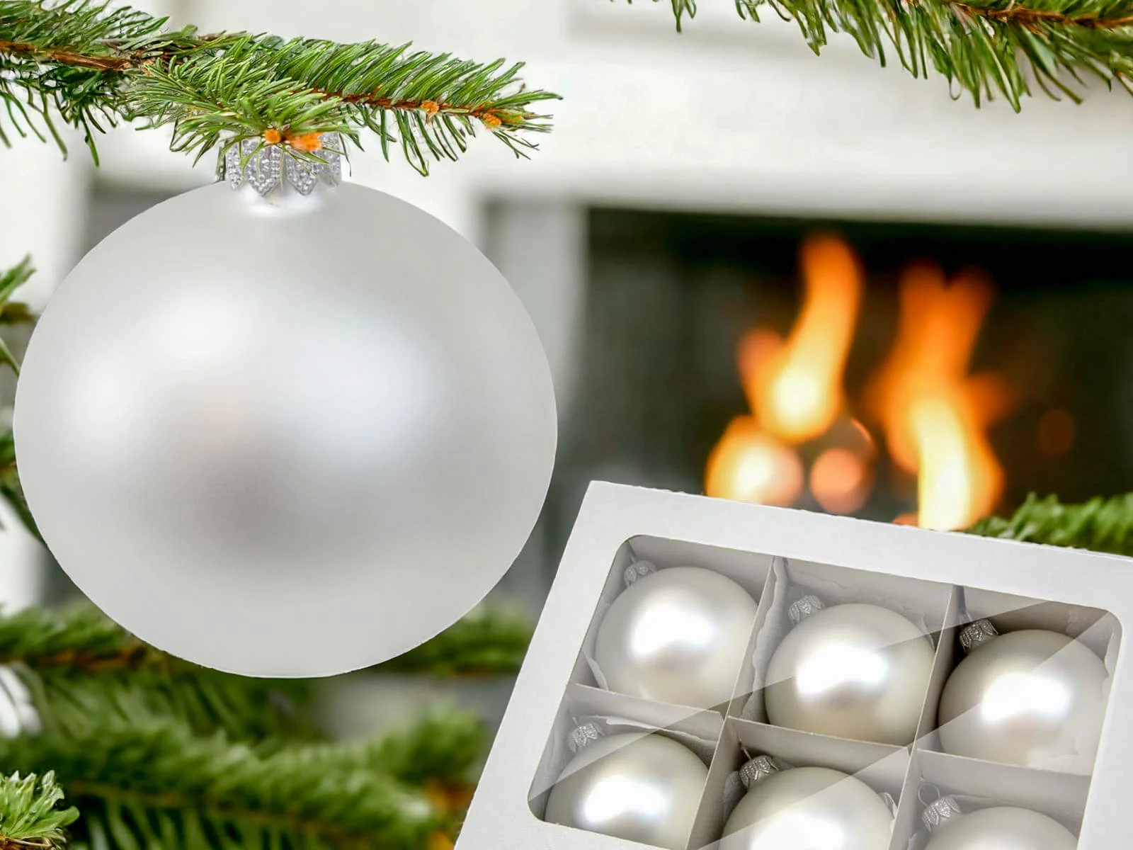 Bombki biała perła mat - 100 mm bombki choinkowe szklane 6 szt