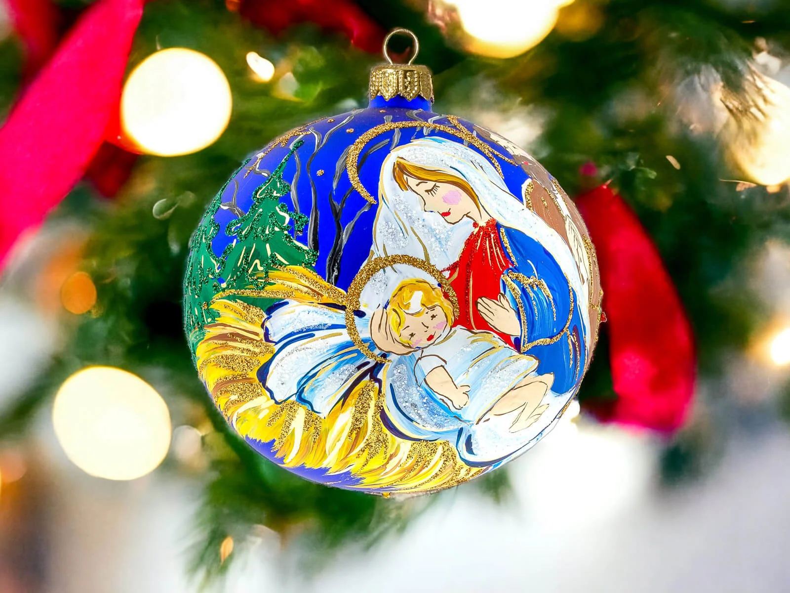 Szopka na granacie - 100 mm bombka choinkowa szklana 1 szt