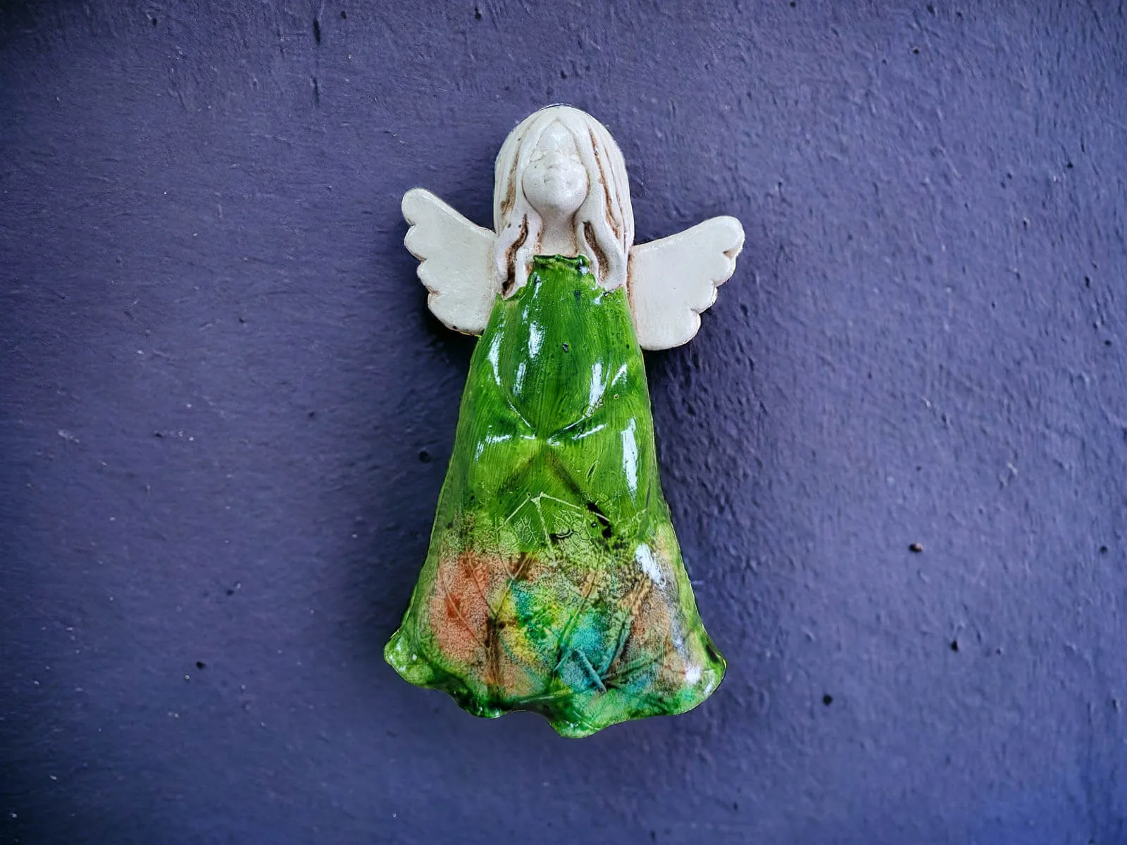 Anioł Allen & Alice - czerwony zielony -  25 x 14 cm figurka dekoracyjna gipsowa