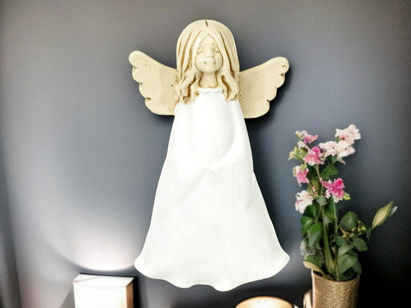 Anioł Monica - biała -  18 x 10 cm figurka dekoracyjna gipsowa