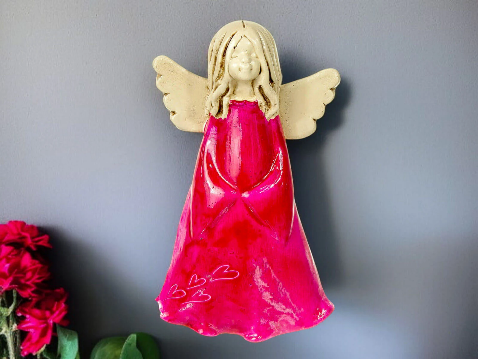 Anioł Monica - różowy -  18 x 10 cm figurka dekoracyjna gipsowa