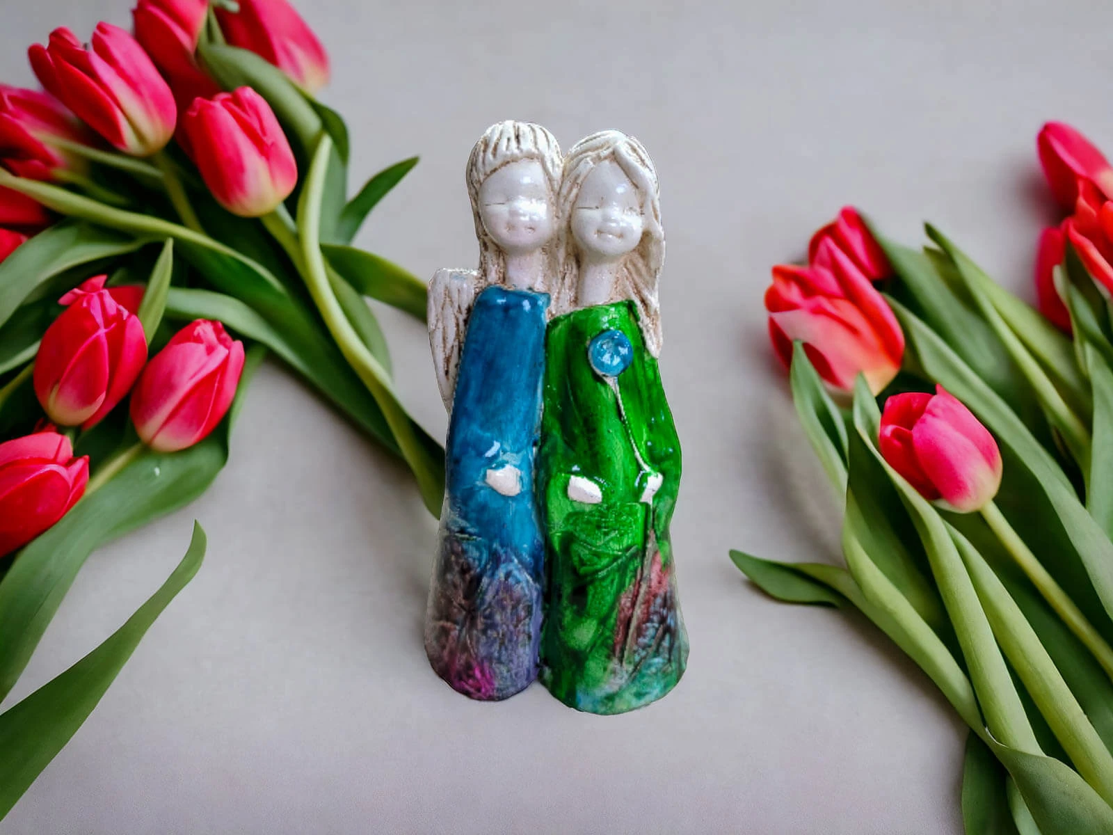 Anioł Hannah & Evelyn - błękitny seledyn - 32 x 15 cm figurka dekoracyjna gipsowa