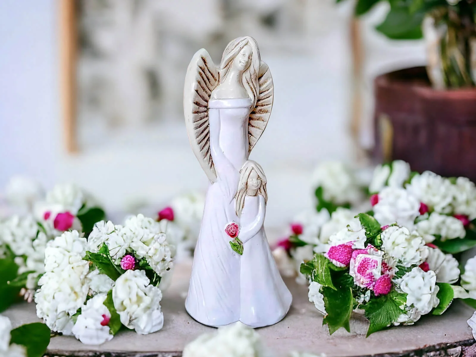Anioł Apple & Ella - biały - 18 x 10 cm figurka dekoracyjna gipsowa