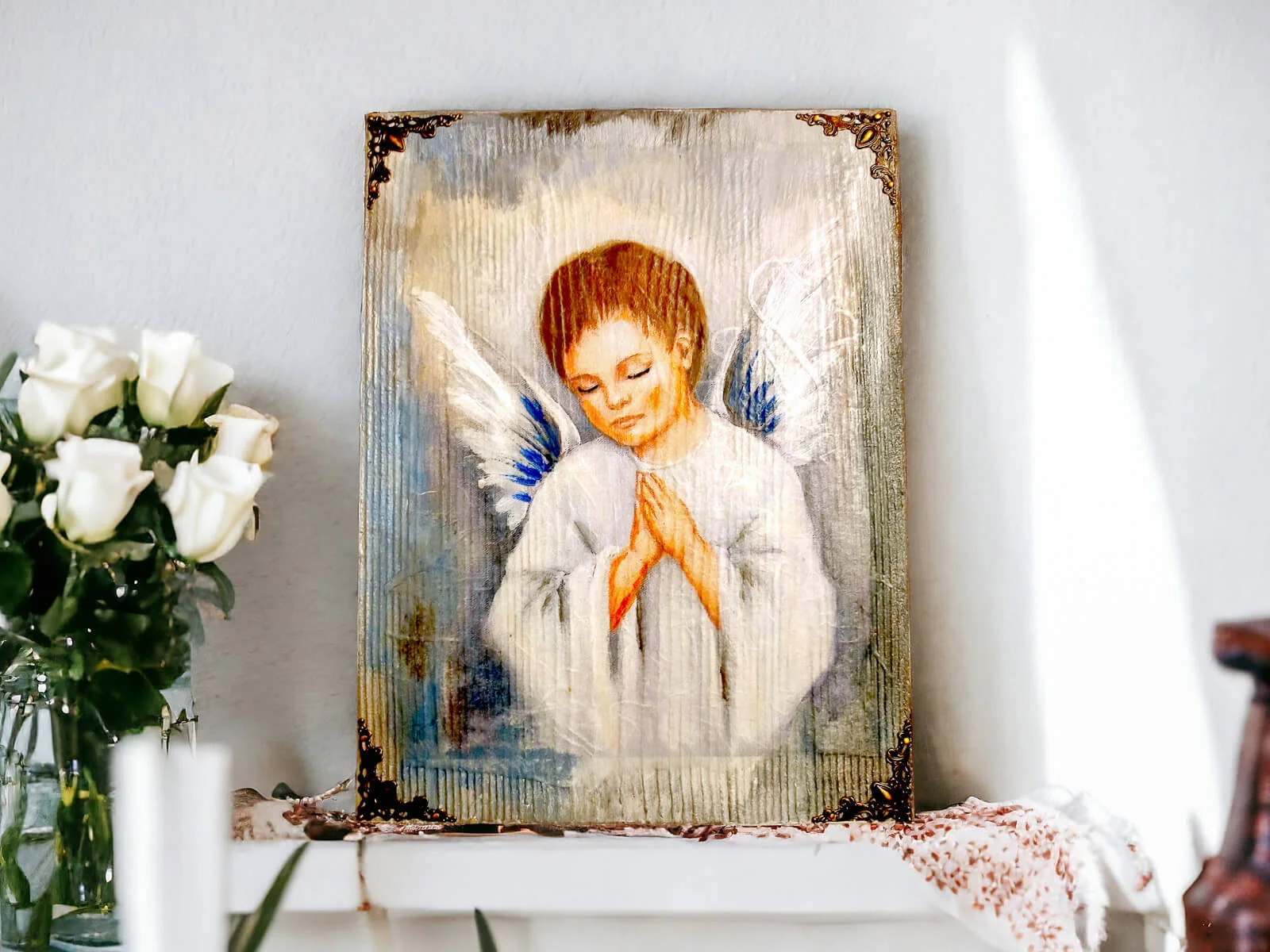 Anioł Chłopiec - obraz na desce -  22.5 x 29.5 cm