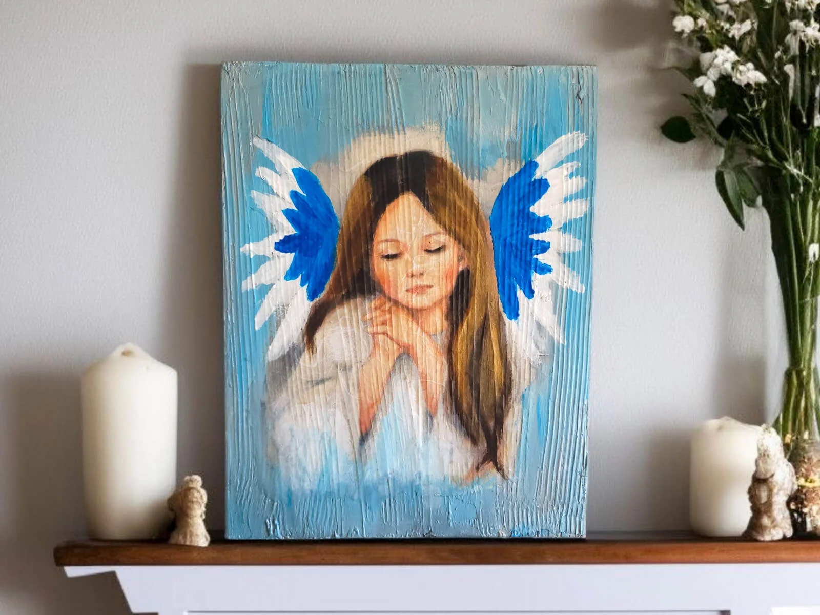 Anioł Dziewczynka - obraz na desce - 22.5 x 29.5 cm