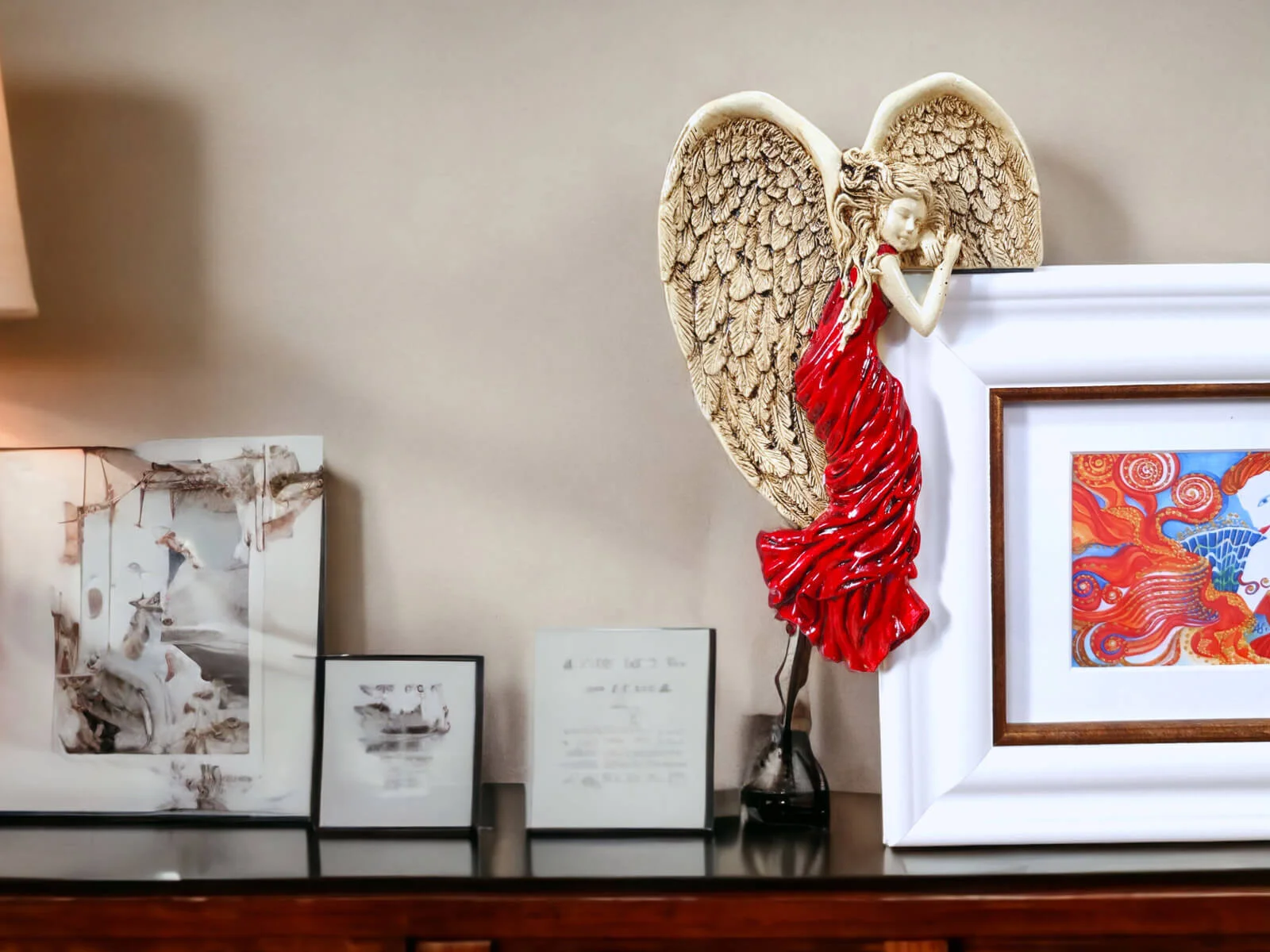 Anioł Andrea - czerwony lewy - 19 x 11 cm figurka dekoracyjna gipsowa