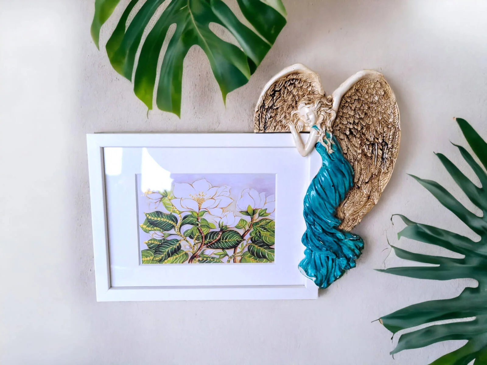 Andrea + Ramka Prosta - turkus prawa - 13 x 18 cm figurka dekoracyjna gipsowa