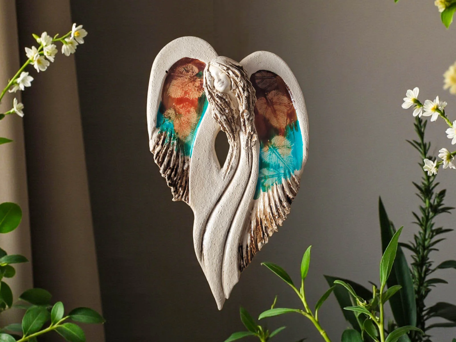 Anioł Gaja Art Flower - 30 x 17 cm figurka dekoracyjna gipsowa