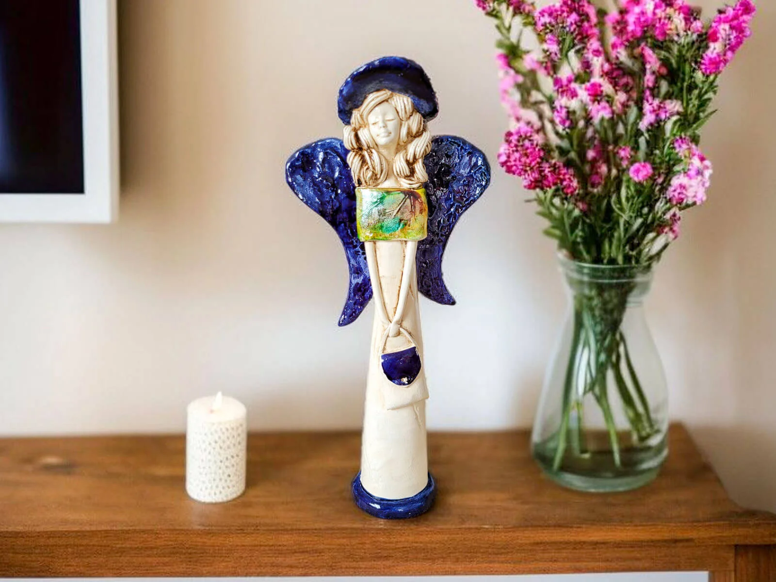 Anioł Margaret - chabrowy -  32 cm figurka dekoracyjna gipsowa