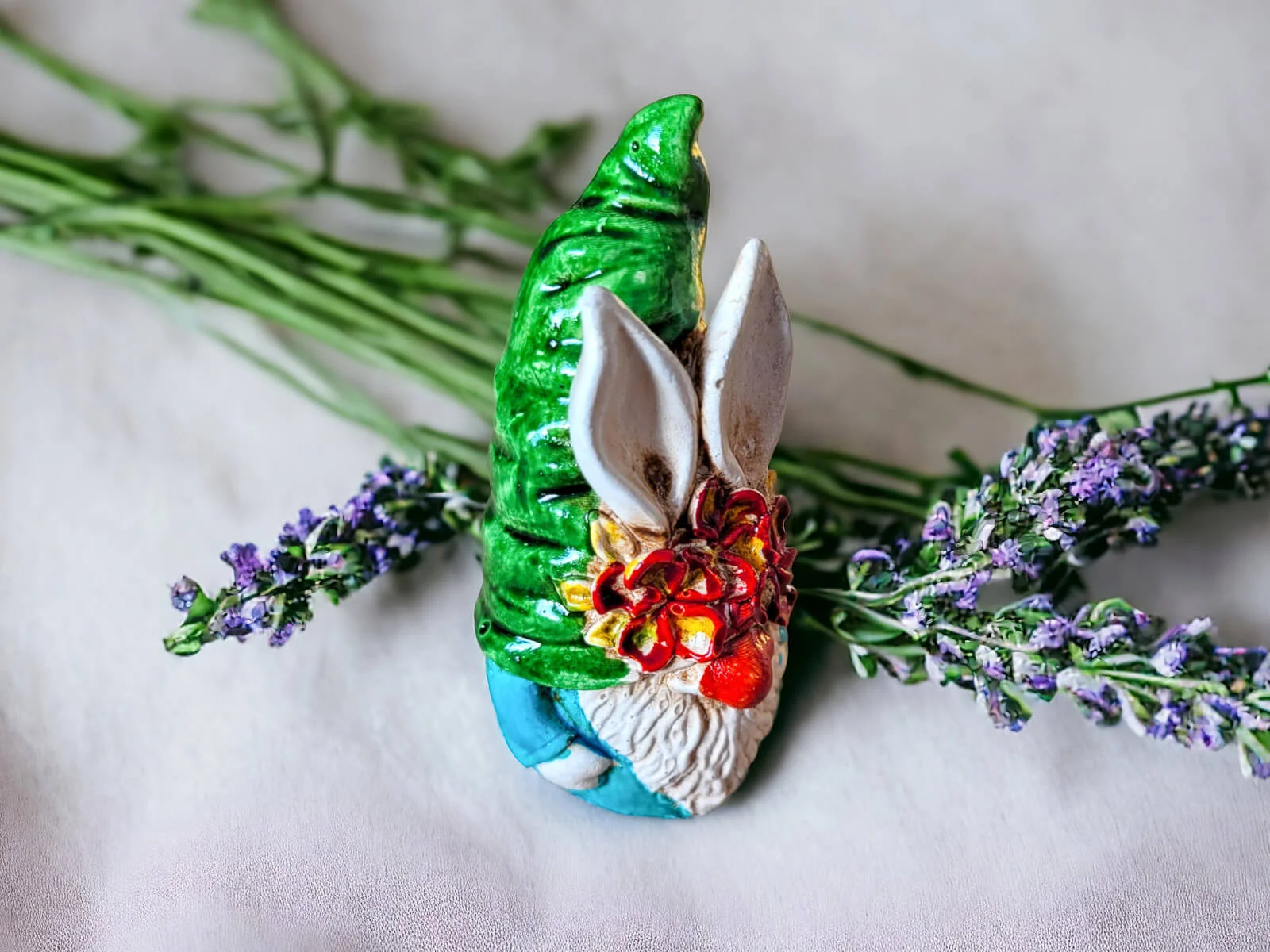 Skrzat Pszczelarz - zielony czerwony - figurka dekoracyjna gipsowa 5 x 5 cm
