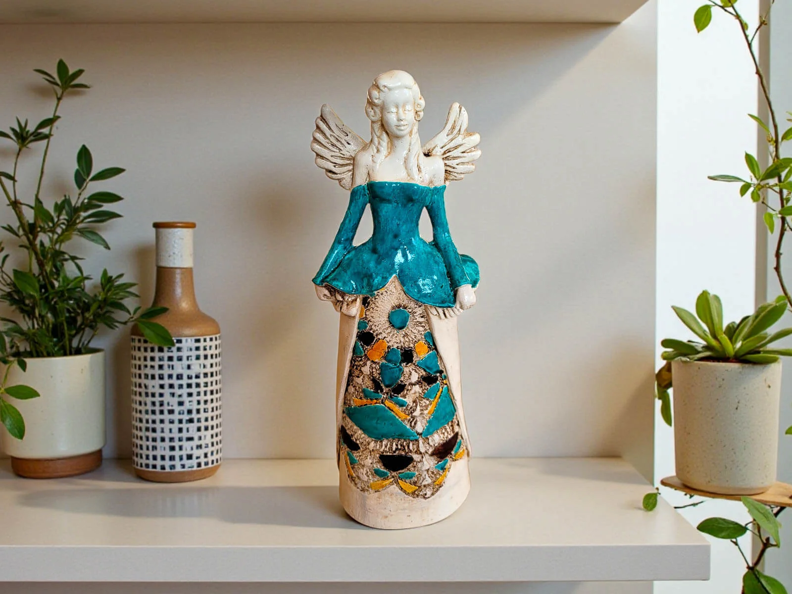 Anioł Anna - turkus -  35 x 15 cm figurka dekoracyjna gipsowa