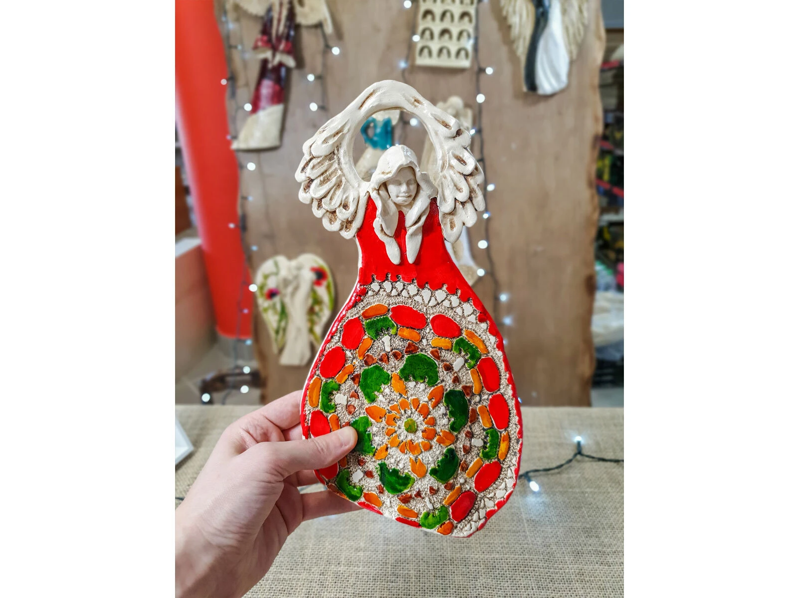 Anioł Obfitości - czerwony zielony - 31 x 16 cm figurka dekoracyjna gipsowa
