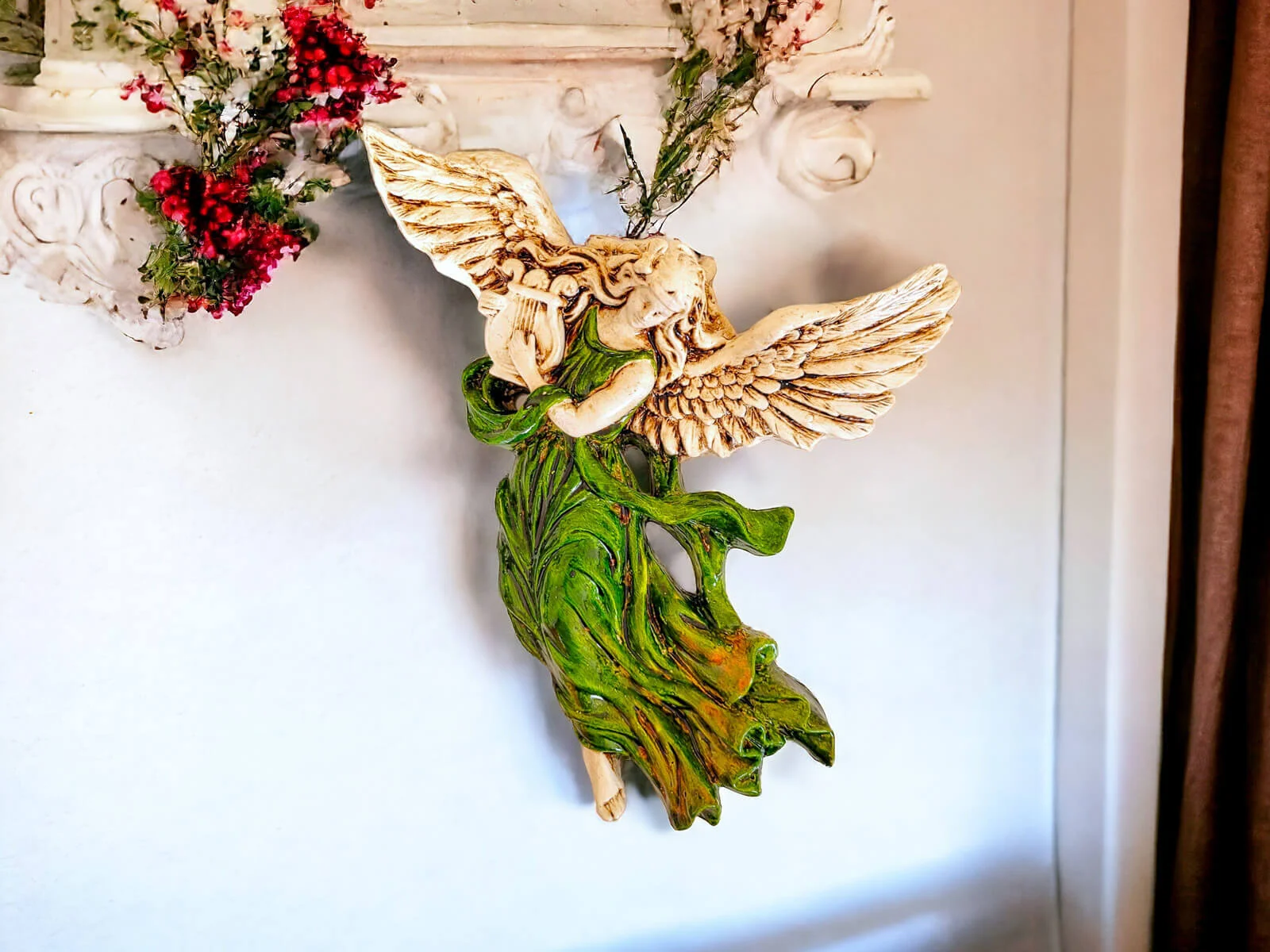Anioł Genesis - wiszący zielony pomarańcz -  55 x 20 cm figurka dekoracyjna gipsowa