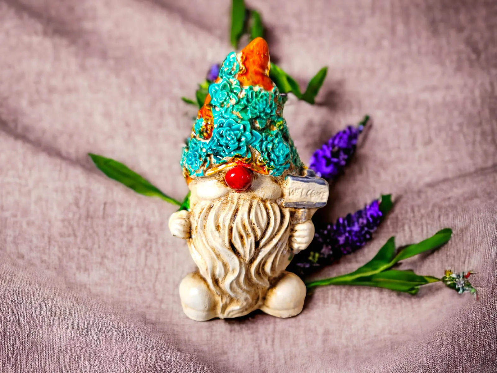 Skrzat Witaj - pomarańcz zielony -  figurka dekoracyjna gipsowa 5 x 5 cm