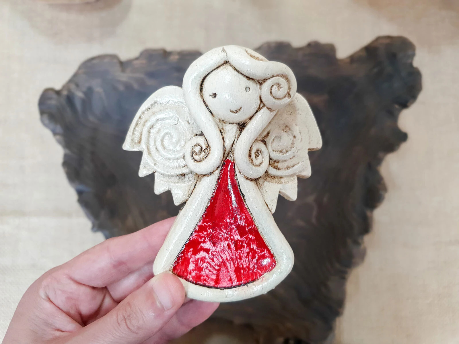 Anioł Anna - czerwony - 35 x 15 cm figurka dekoracyjna gipsowa