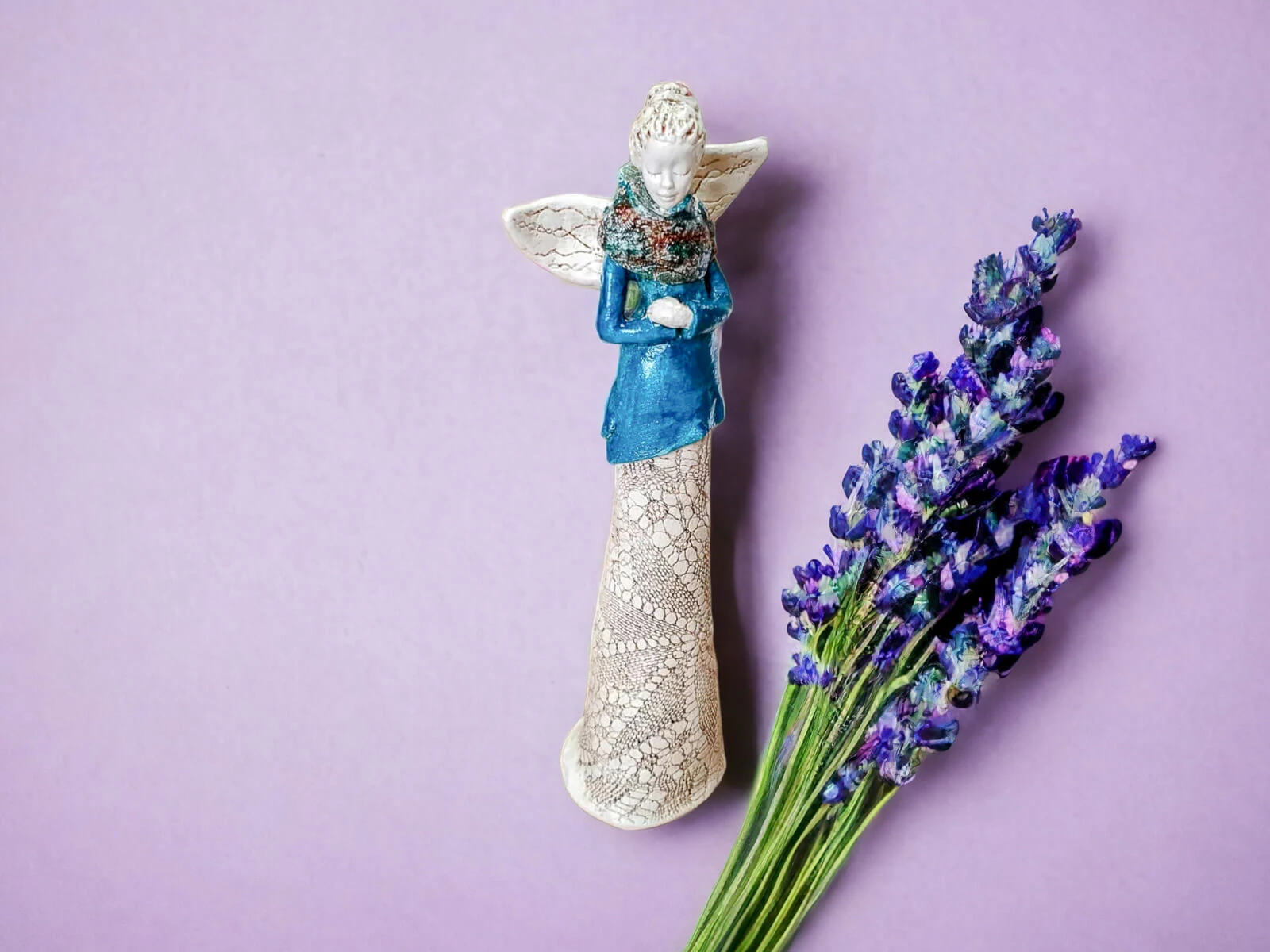 Przepiękny anioł z cudownym koronkowym wzorem na spódnicy.