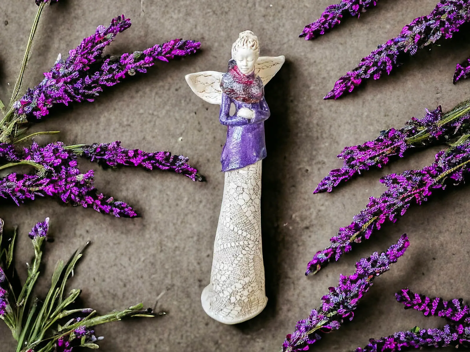 Anioł Catherine - wrzosowy - 35 x 15 cm figurka dekoracyjna gipsowa