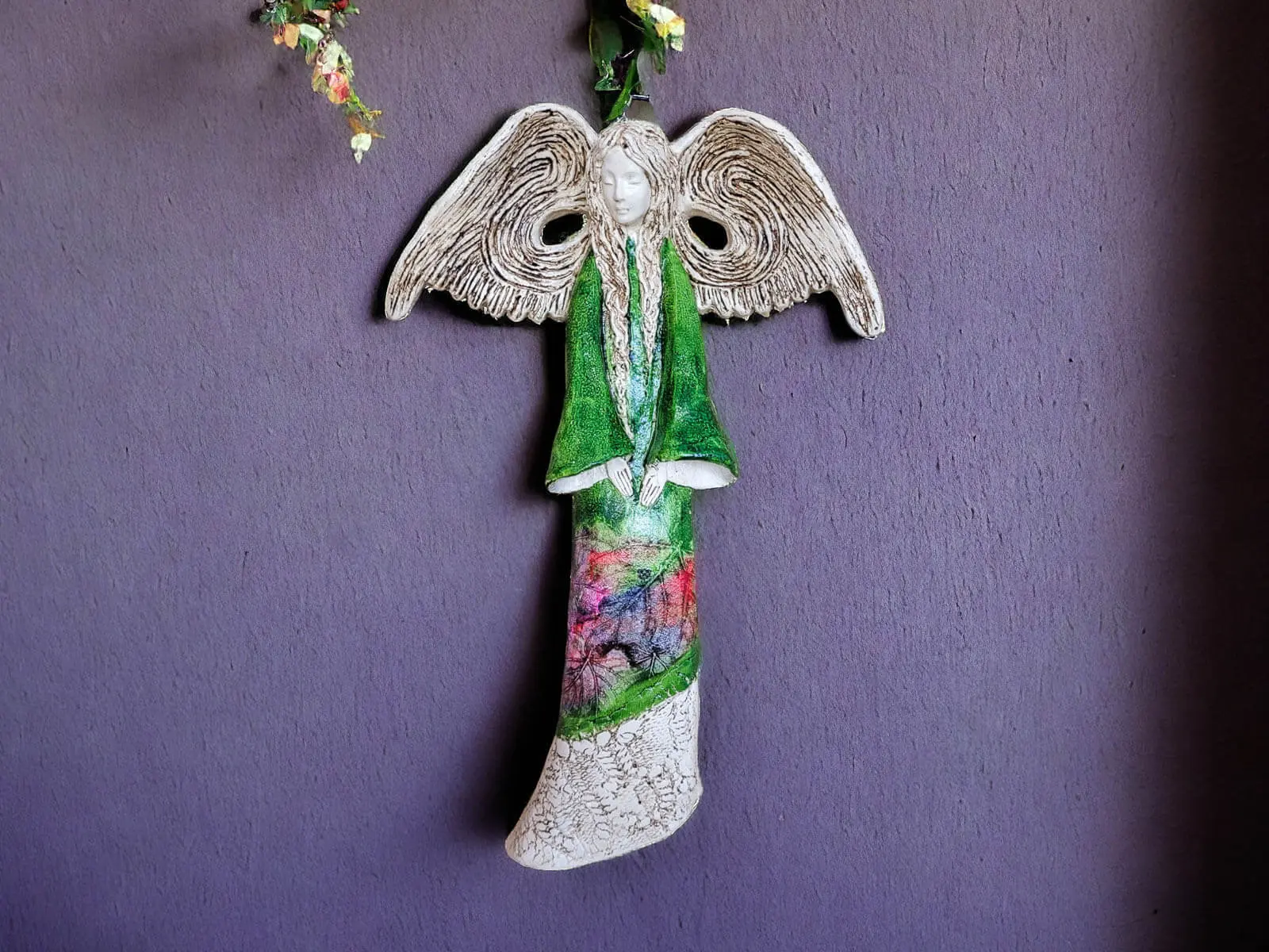 Anioł Clara Art Leaf - zielony -  40 x 28 cm figurka dekoracyjna gipsowa