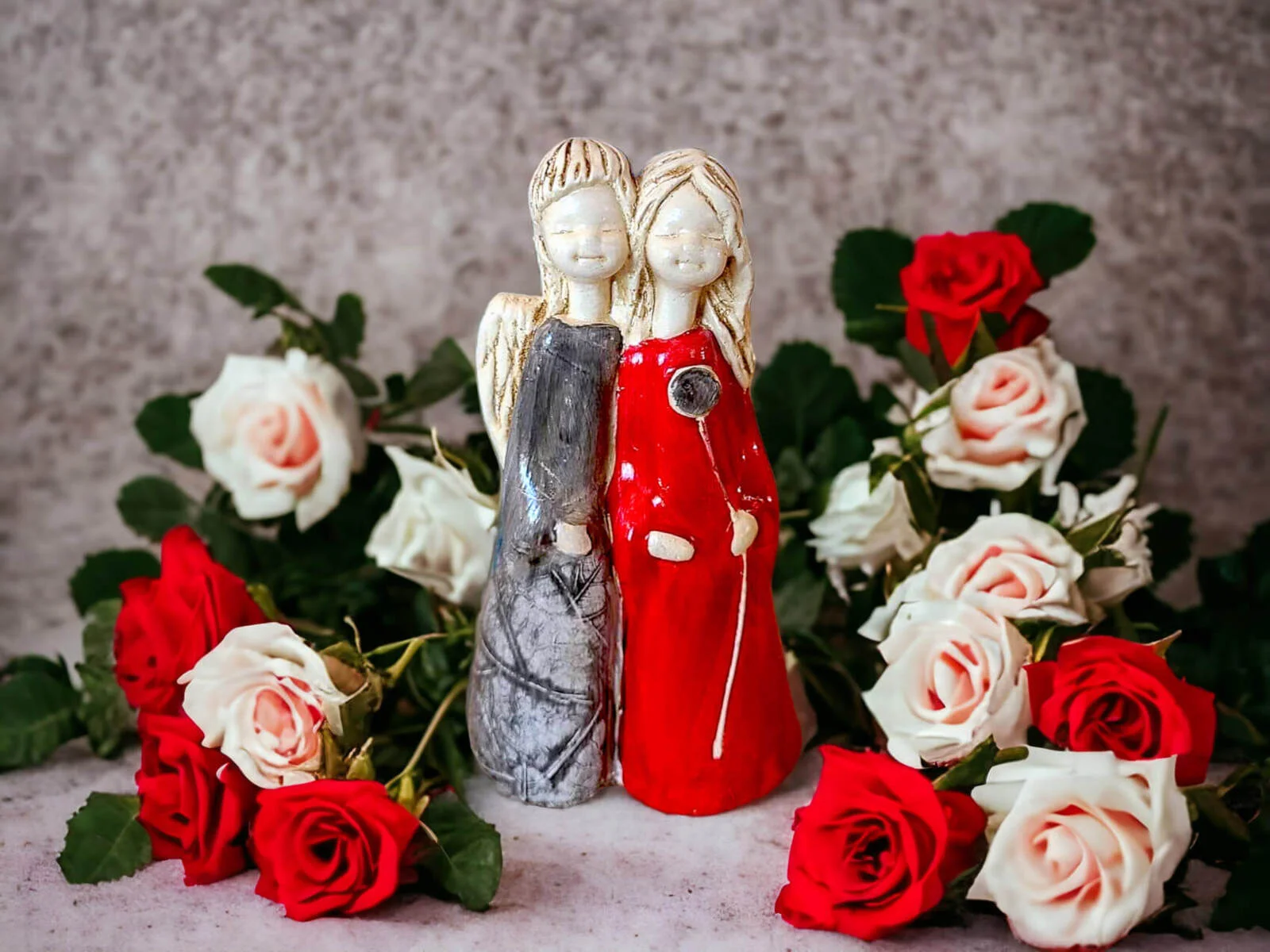 Anioły Apple & Ella - czerwony szary -  18 x 10 cm figurka dekoracyjna gipsowa