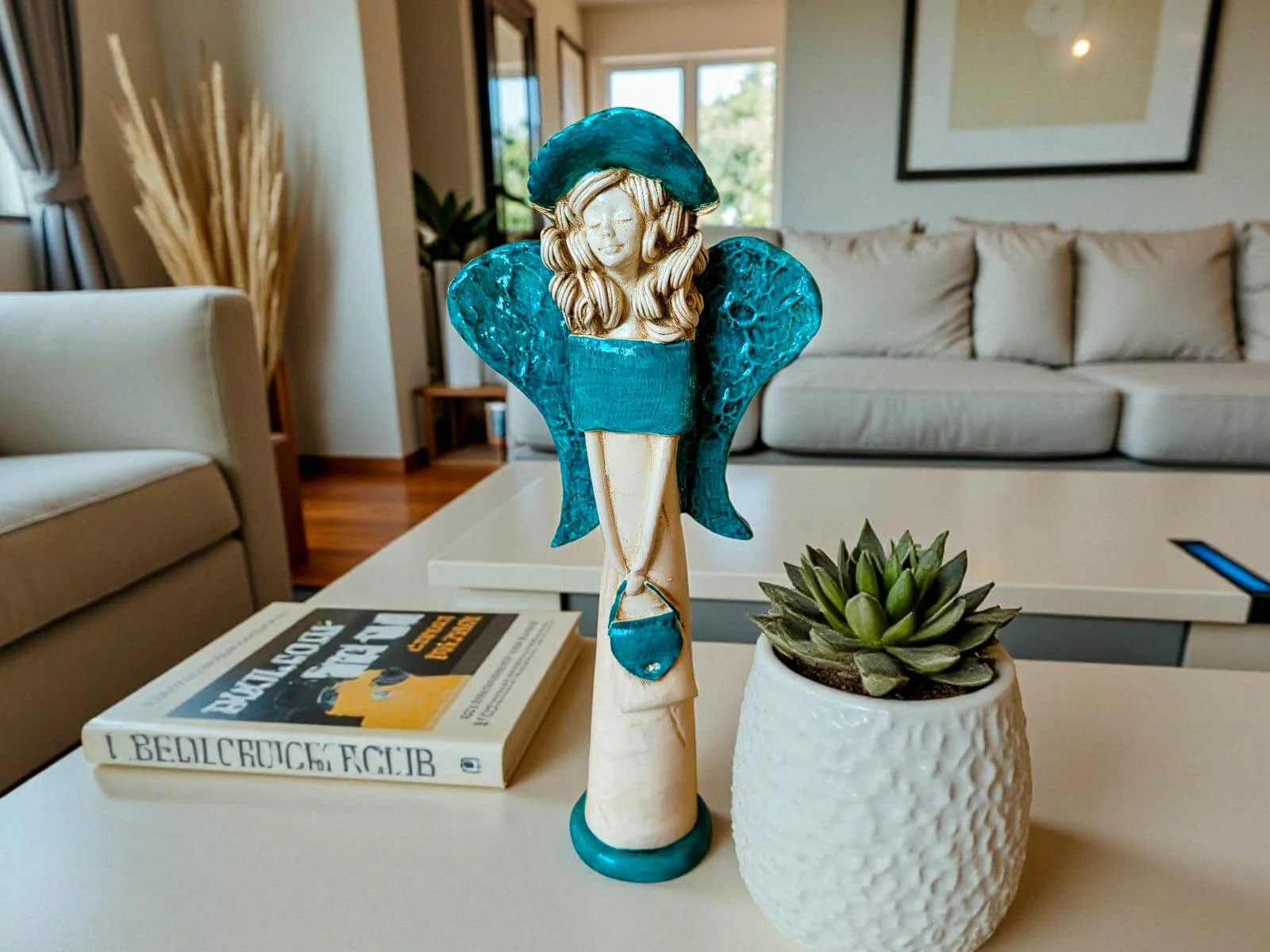 Anioł Coco - turkusowy - 30 x 14 cm figurka dekoracyjna gipsowa