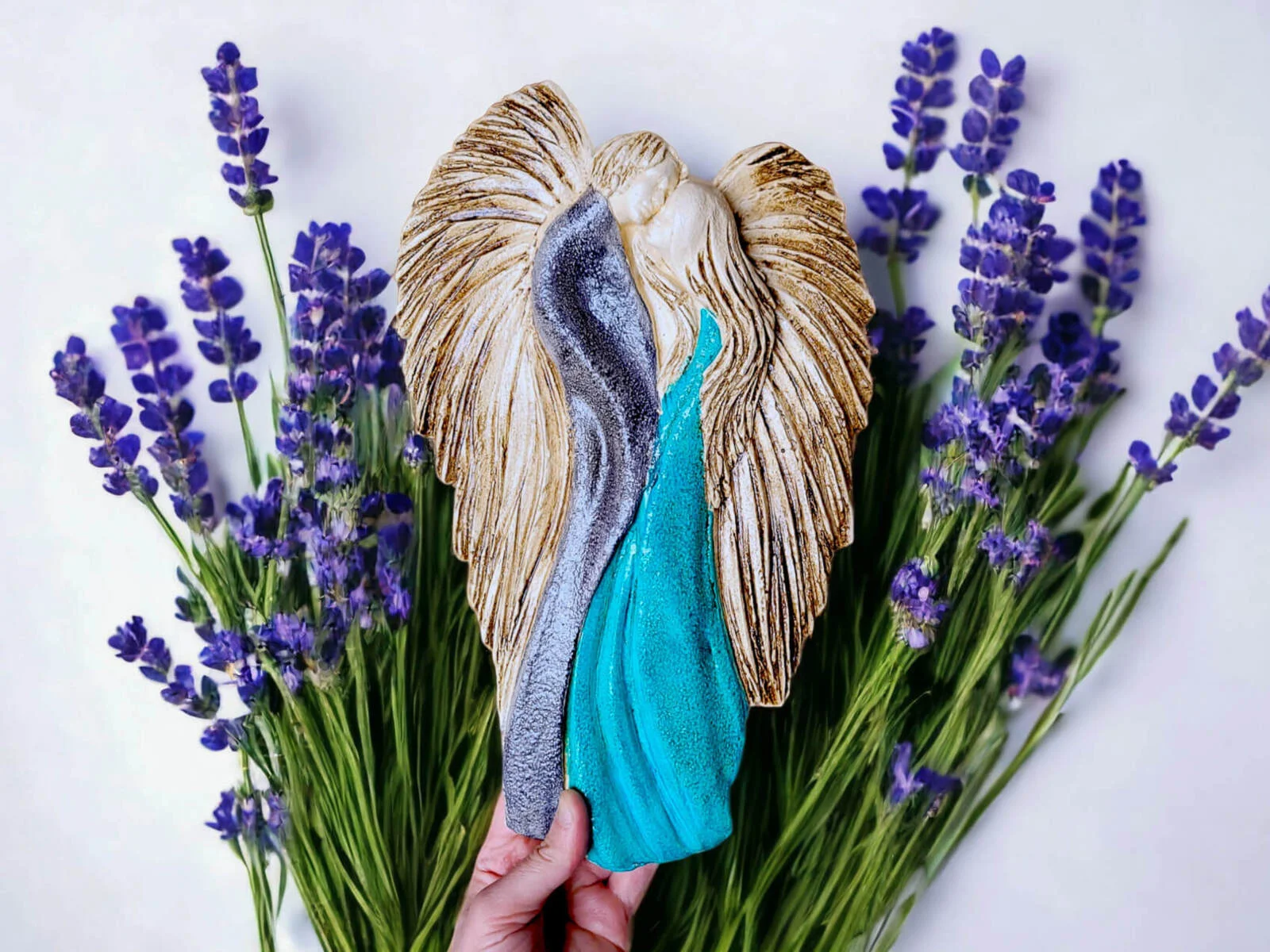 Anioł Elise - turkus -  35 x 15 cm figurka dekoracyjna gipsowa