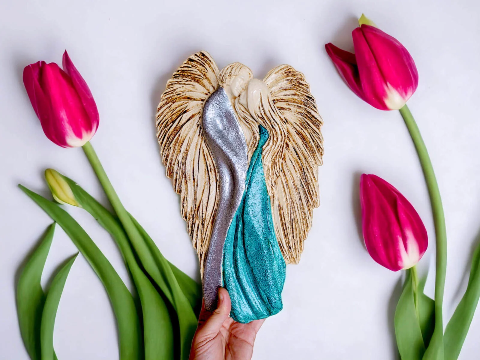 Skrzydła Anioła na ścianę - wiszące - 30 x 40 cm figurka dekoracyjna gipsowa