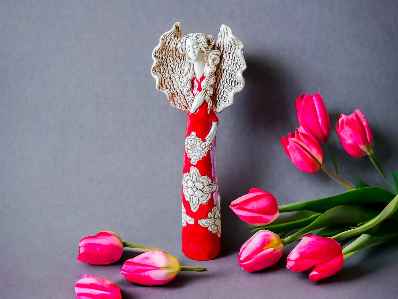 Anioł Dorothy - czerwony - 45 x 30 cm figurka dekoracyjna gipsowa