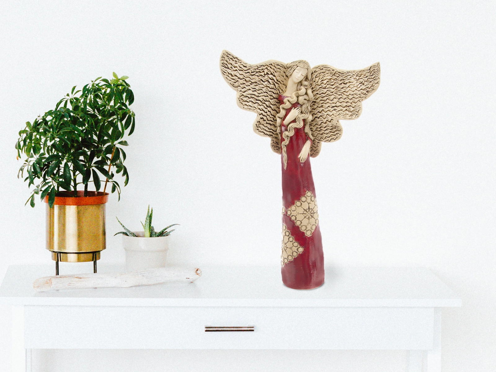 Anioł Madelyn - czerwony -  47 x 18 cm figurka dekoracyjna gipsowa