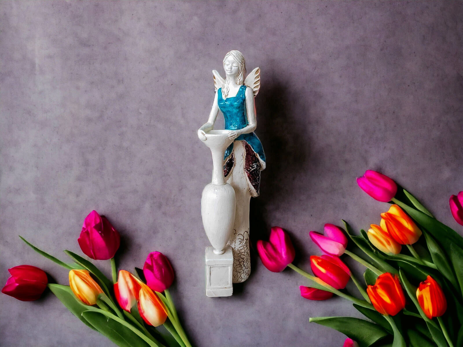 Anioł Suri - turkus - 32 x 15 cm figurka dekoracyjna gipsowa