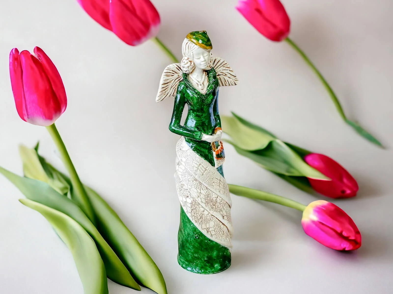 Anioł Charlotte - zielony ciemny - 32 x 15 cm figurka dekoracyjna gipsowa