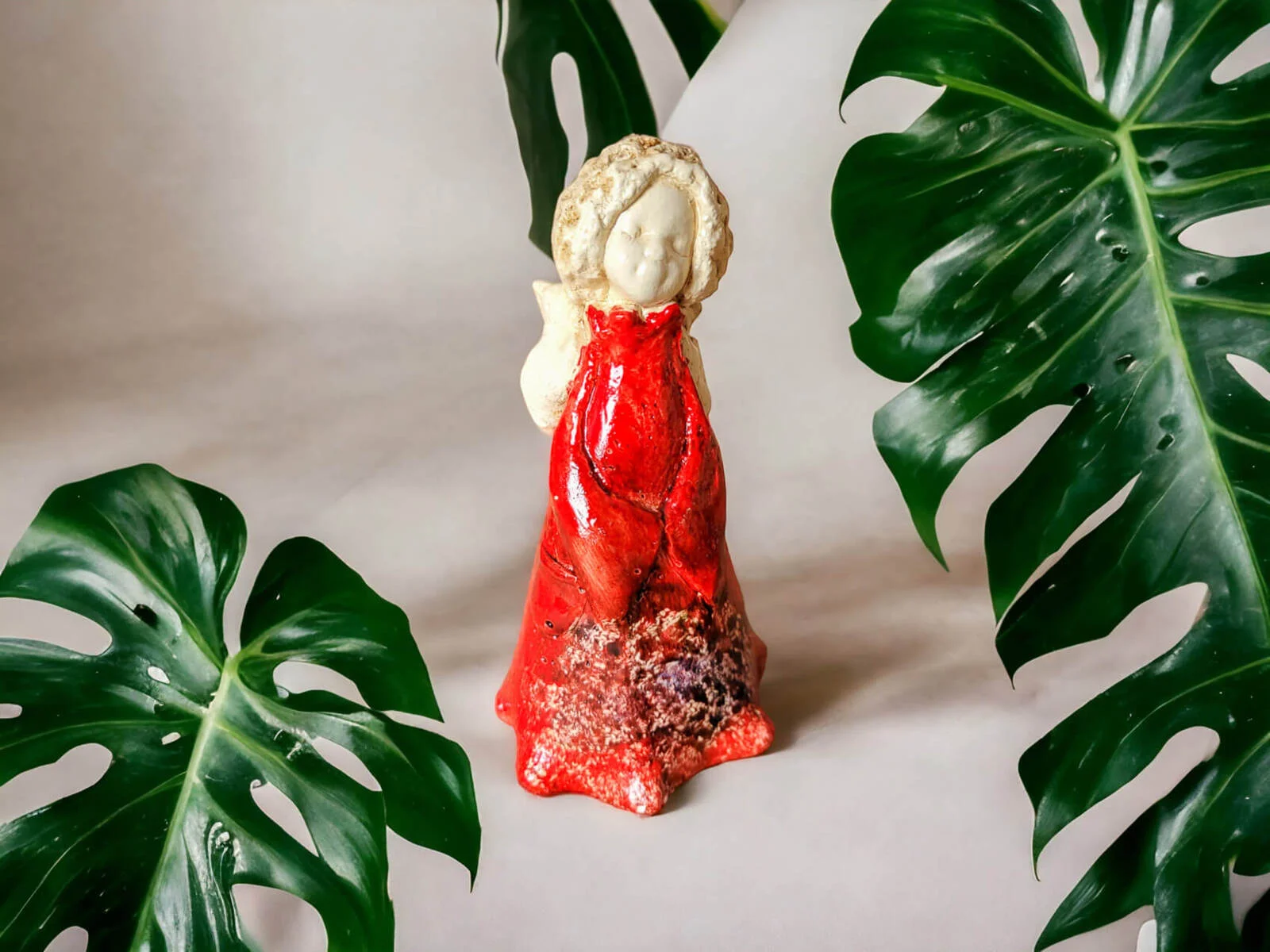 Anioł Maryann Art - czerwony - 15 x 7.5 cm figurka dekoracyjna gipsowa