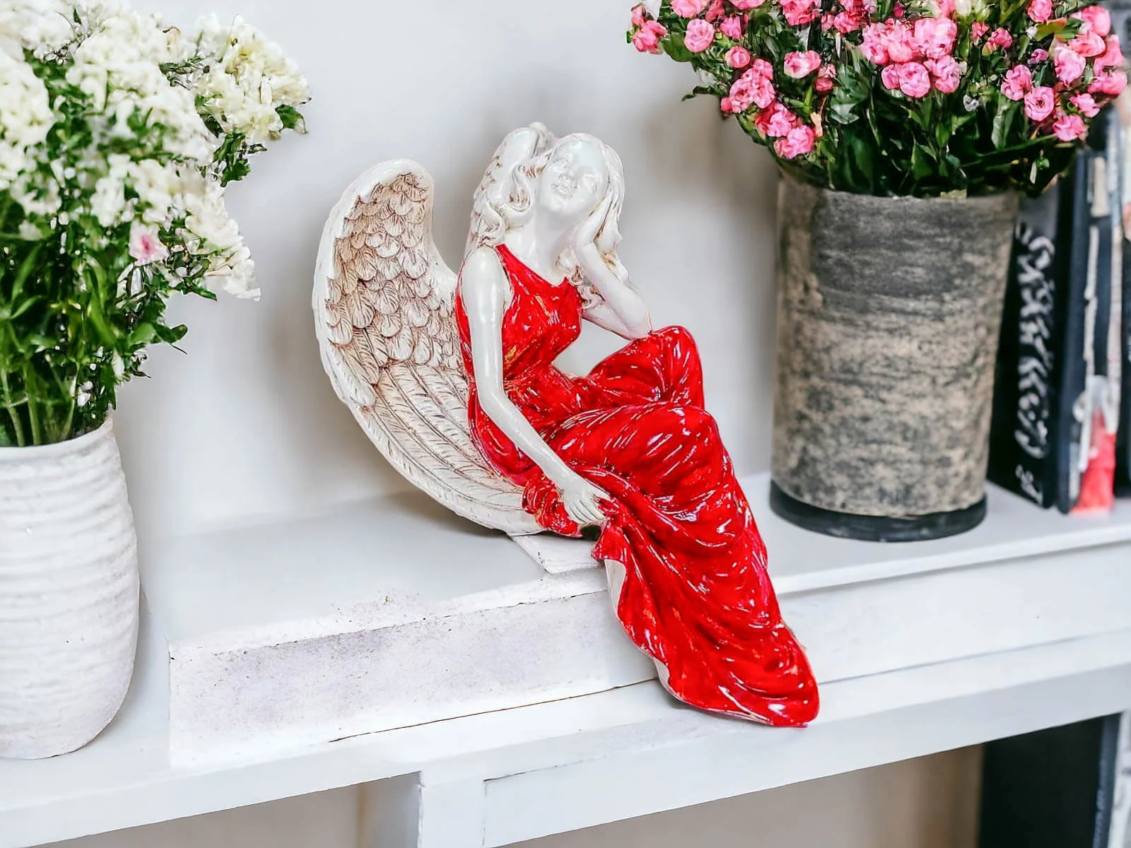 Anioł Elise - czerwony -  35 x 15 cm figurka dekoracyjna gipsowa