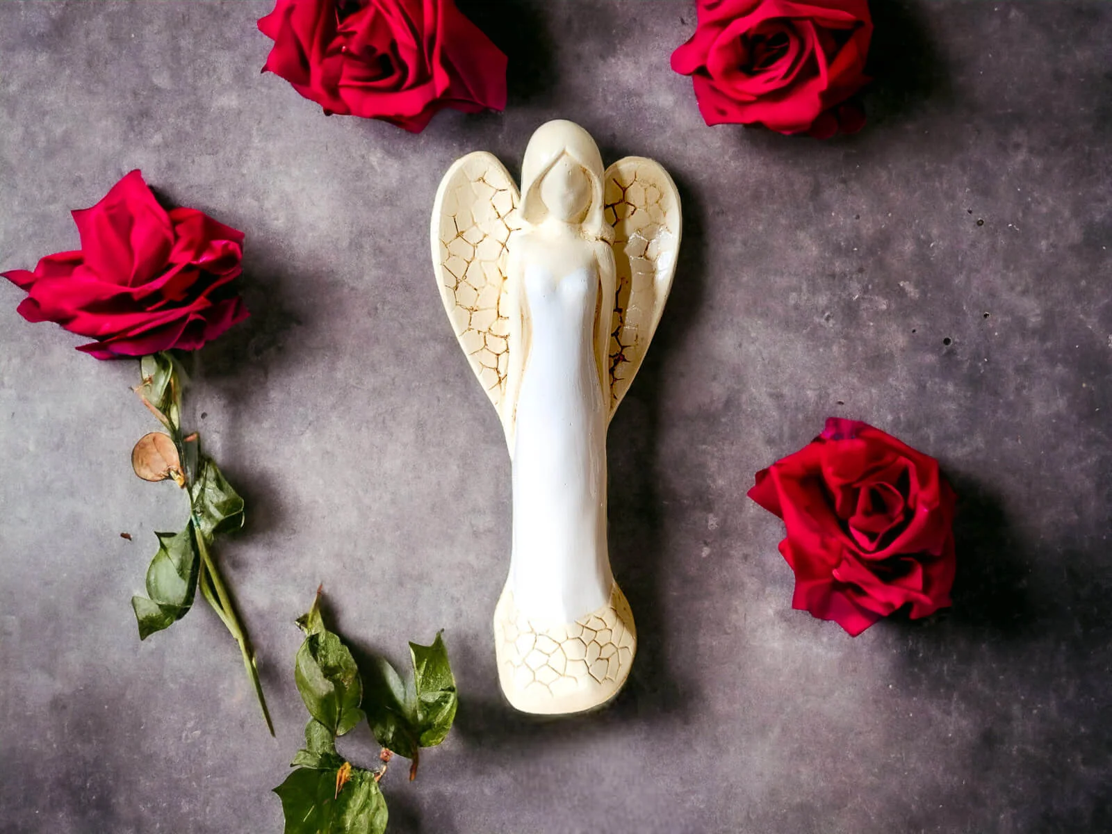 Anioł Emily - biały -  22 x 9 cm figurka dekoracyjna gipsowa