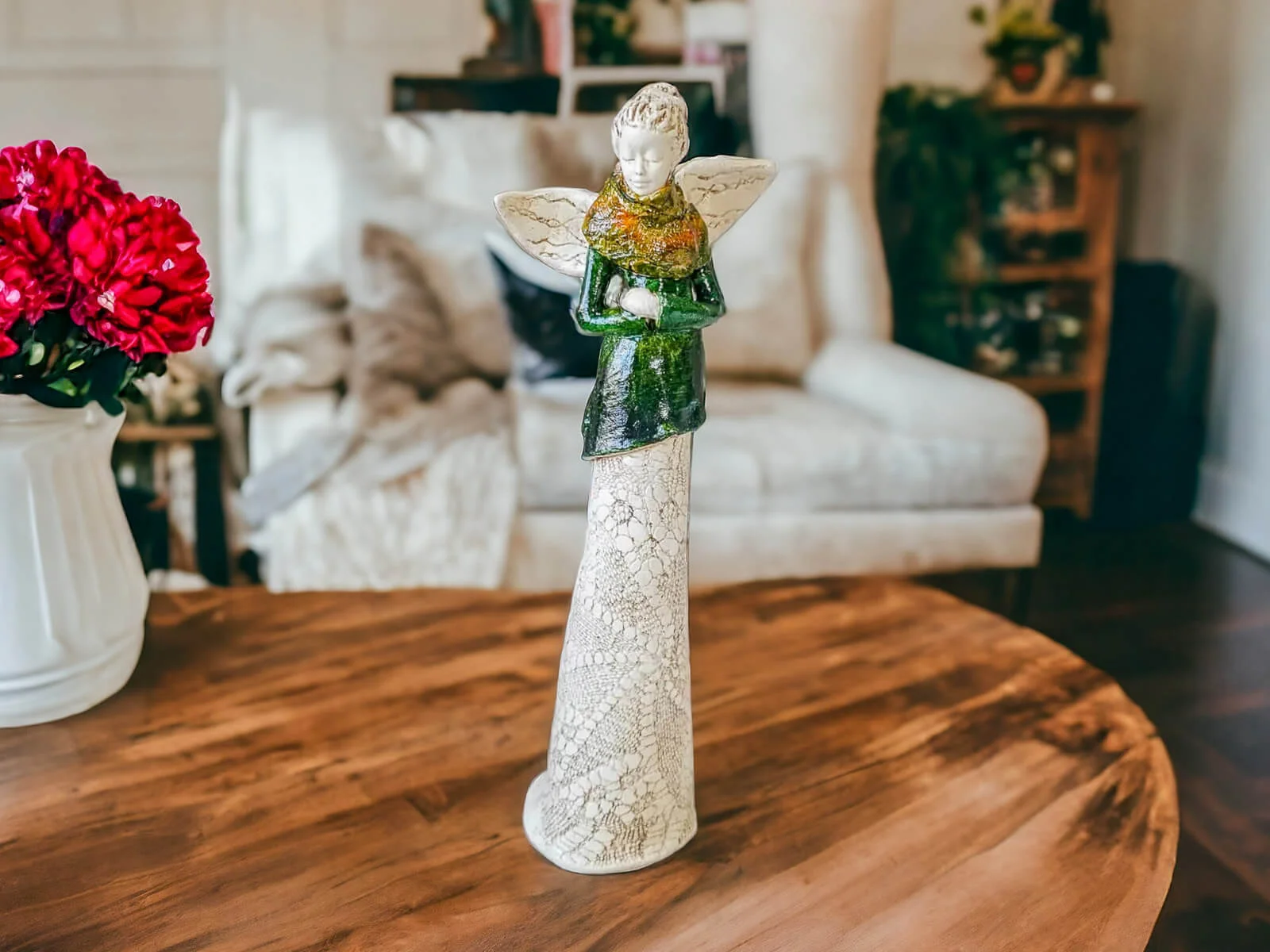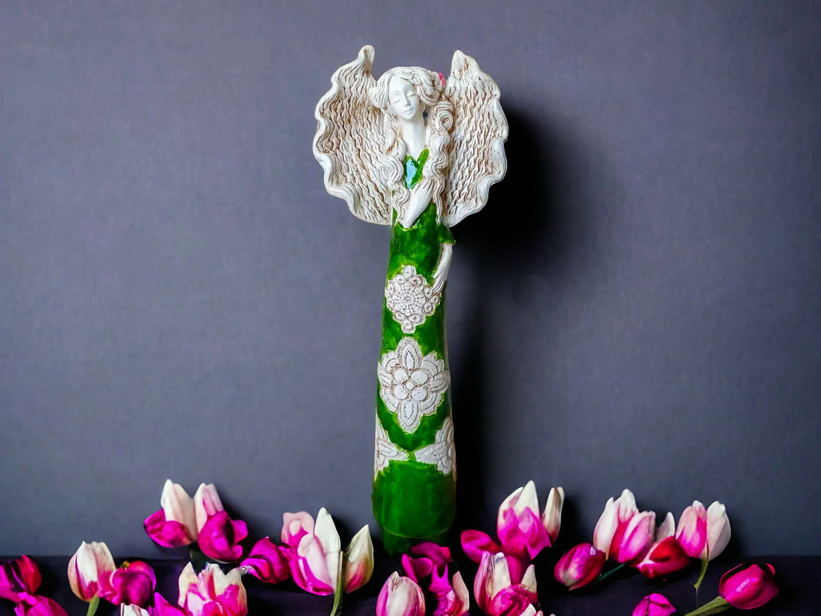Anioł Catherine - zielony - 35 x 15 cm figurka dekoracyjna gipsowa
