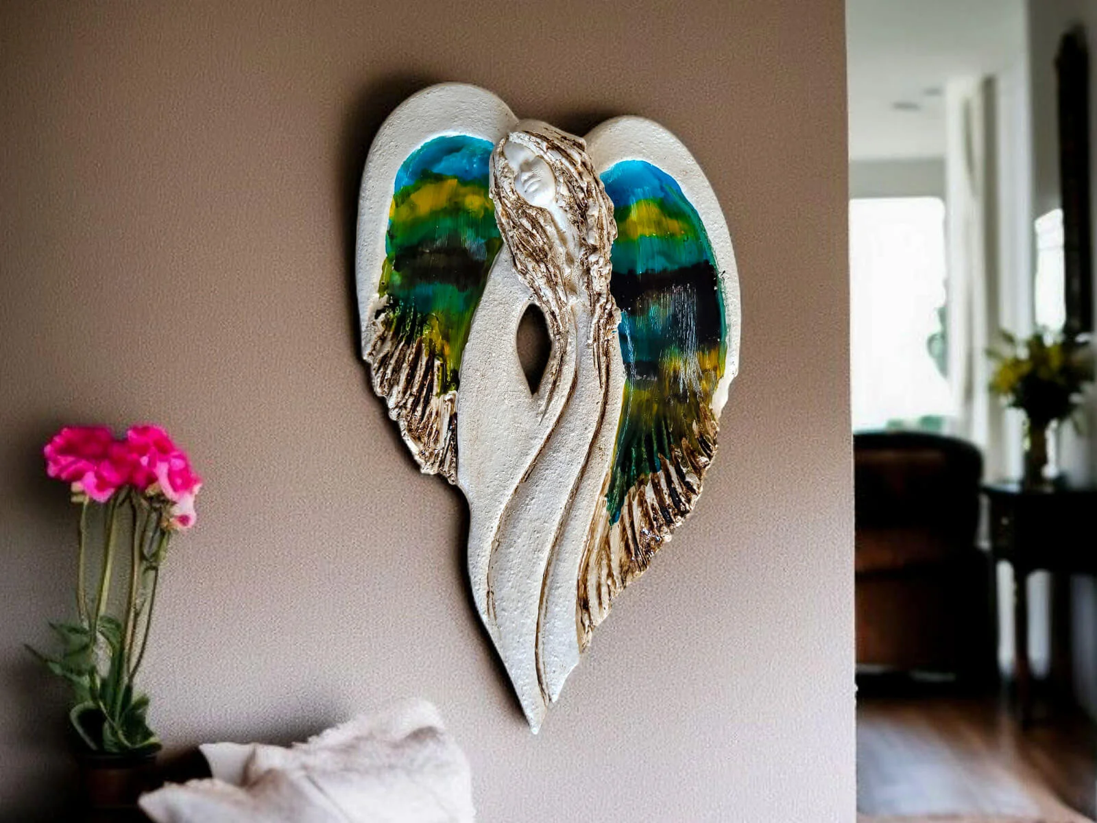 Anioł z Sercem - beżowy -  35 x 15 cm figurka dekoracyjna gipsowa