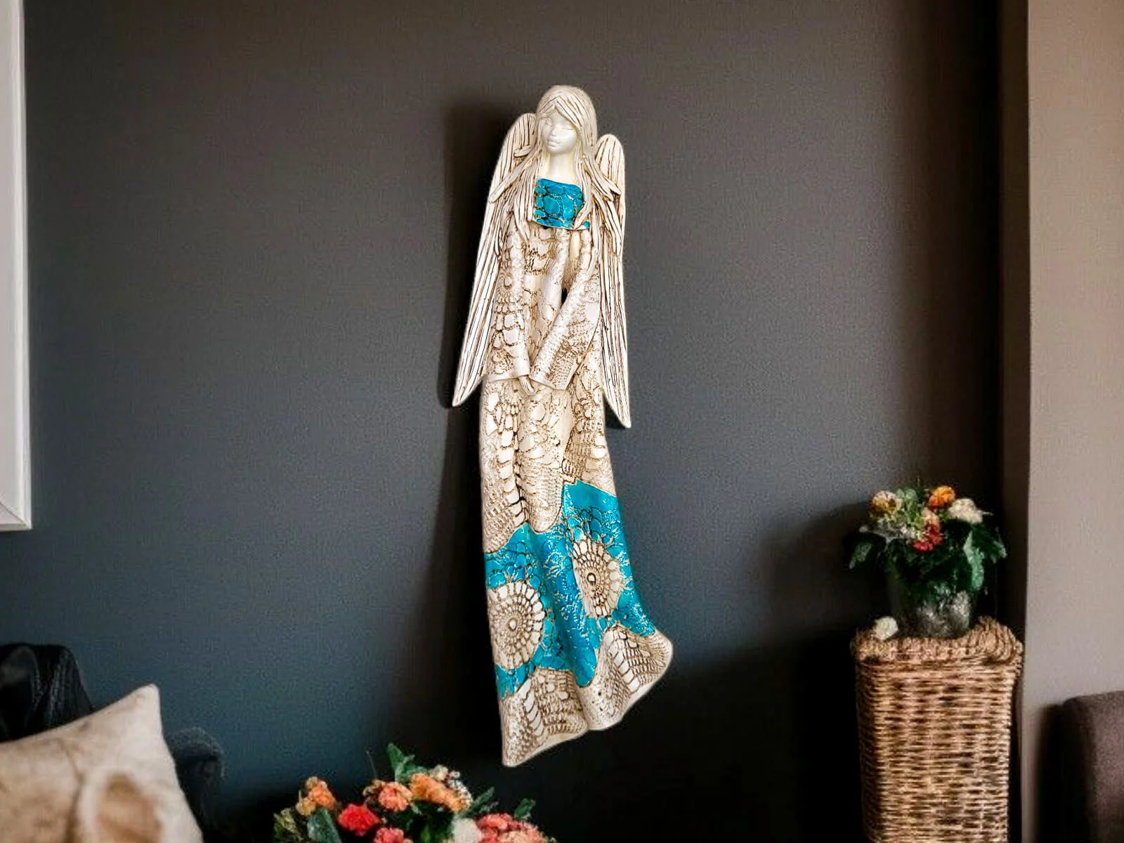 Anioł Genesis - wiszący turkus -  55 x 20 cm figurka dekoracyjna gipsowa
