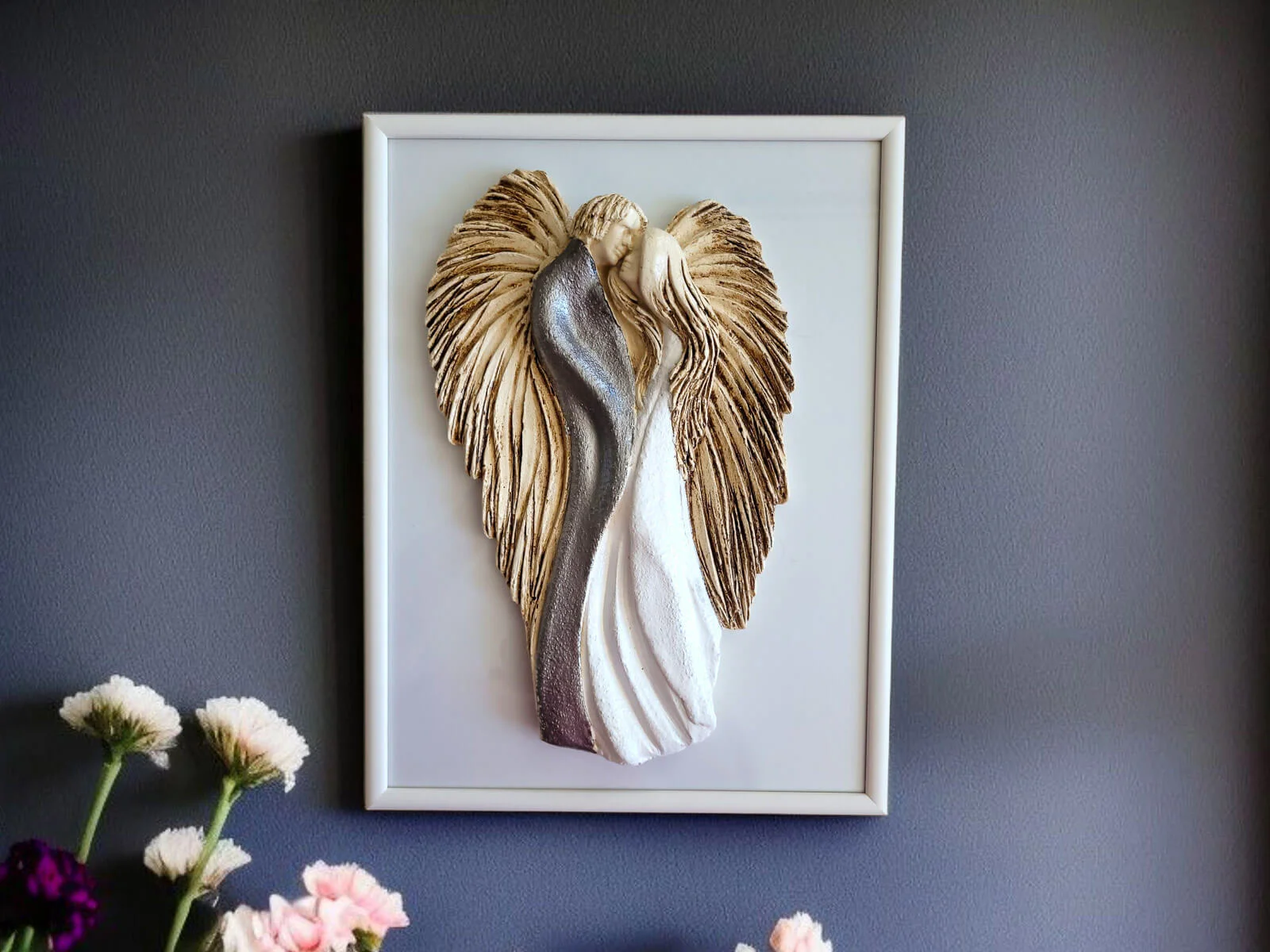 Skrzydła Anioła + ramka - ciemna - wiszące -  30 x 40 cm figurka dekoracyjna gipsowa