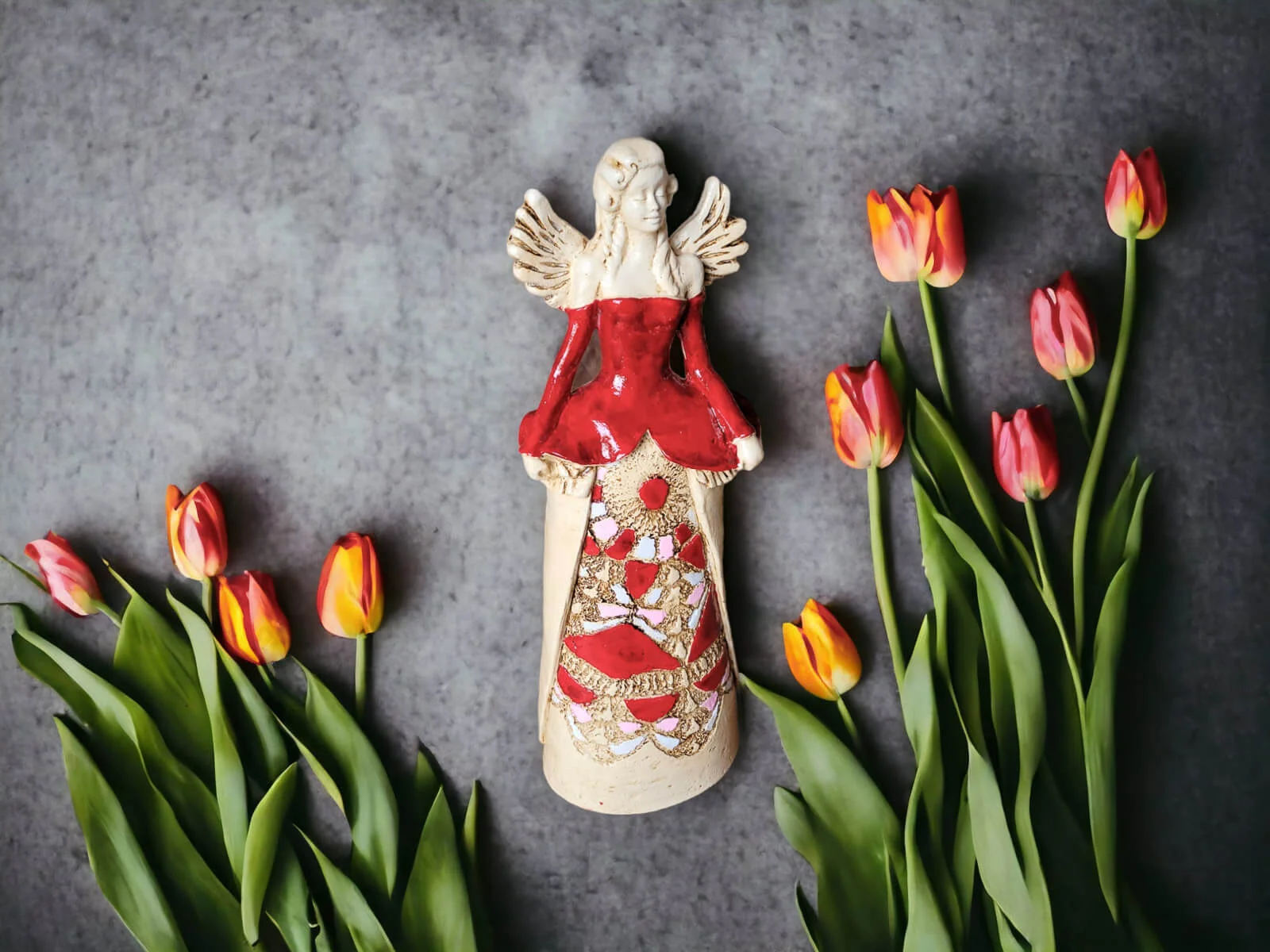 Aniołek Eva - czerwony -  15 cm figurka dekoracyjna gipsowa