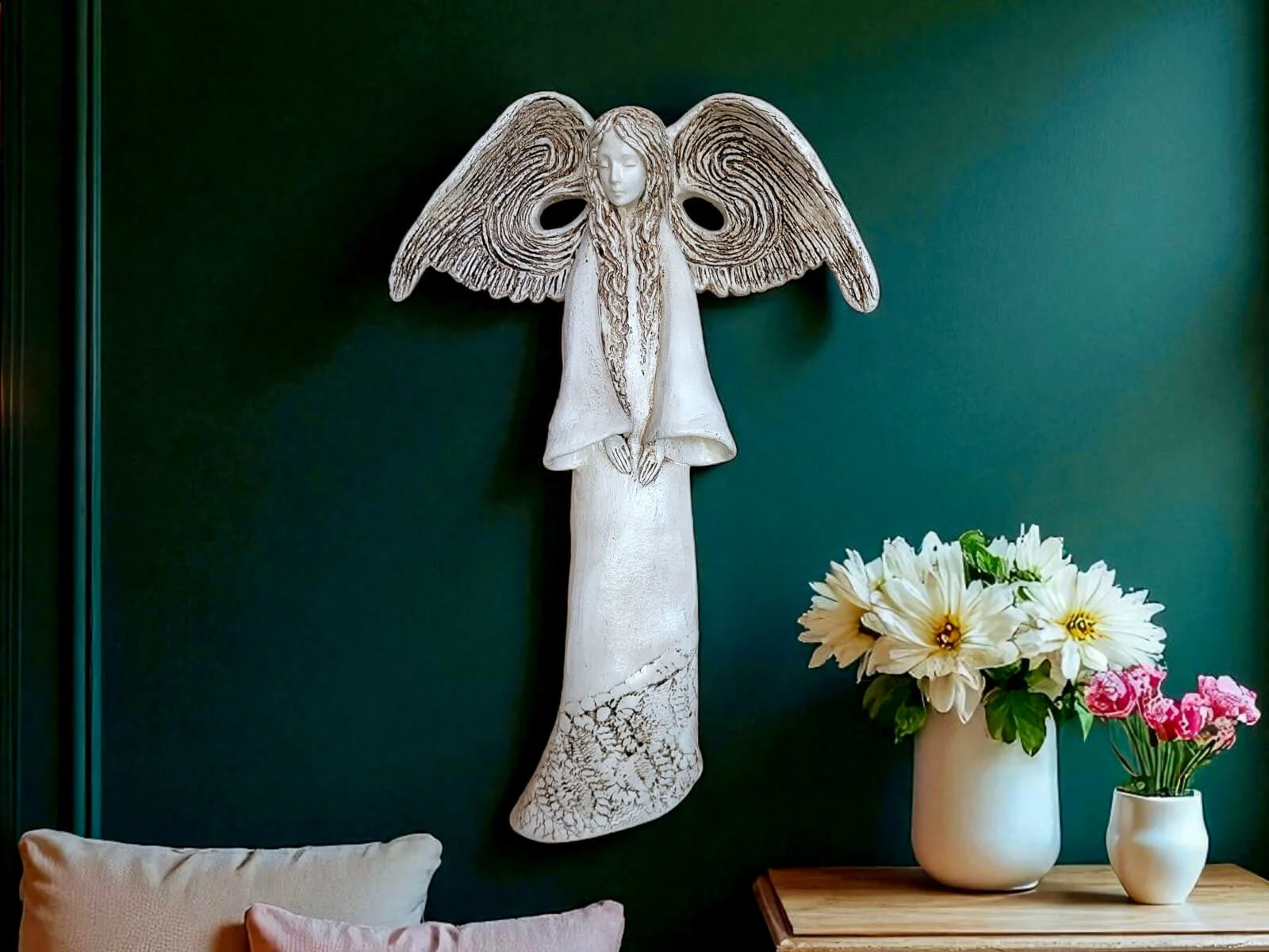 Anioł Clara - beżowy -  40 x 28 cm figurka dekoracyjna gipsowa